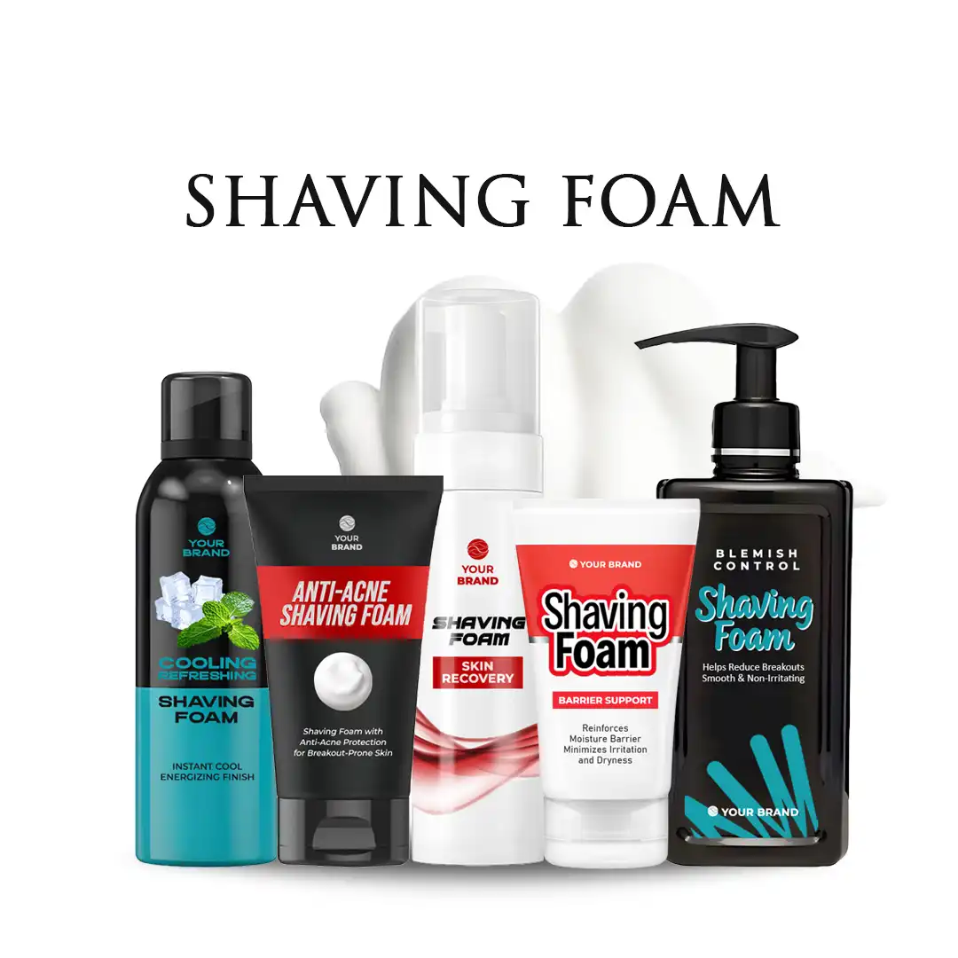 Ya. Kami dapat mengembangkan varian shaving foam dengan manfaat khusus seperti anti-blemish, anti-acne, atau perlindungan kulit (barrier support). Formula disesuaikan dengan bahan aktif berkualitas dan target pasar pria yang spesifik.